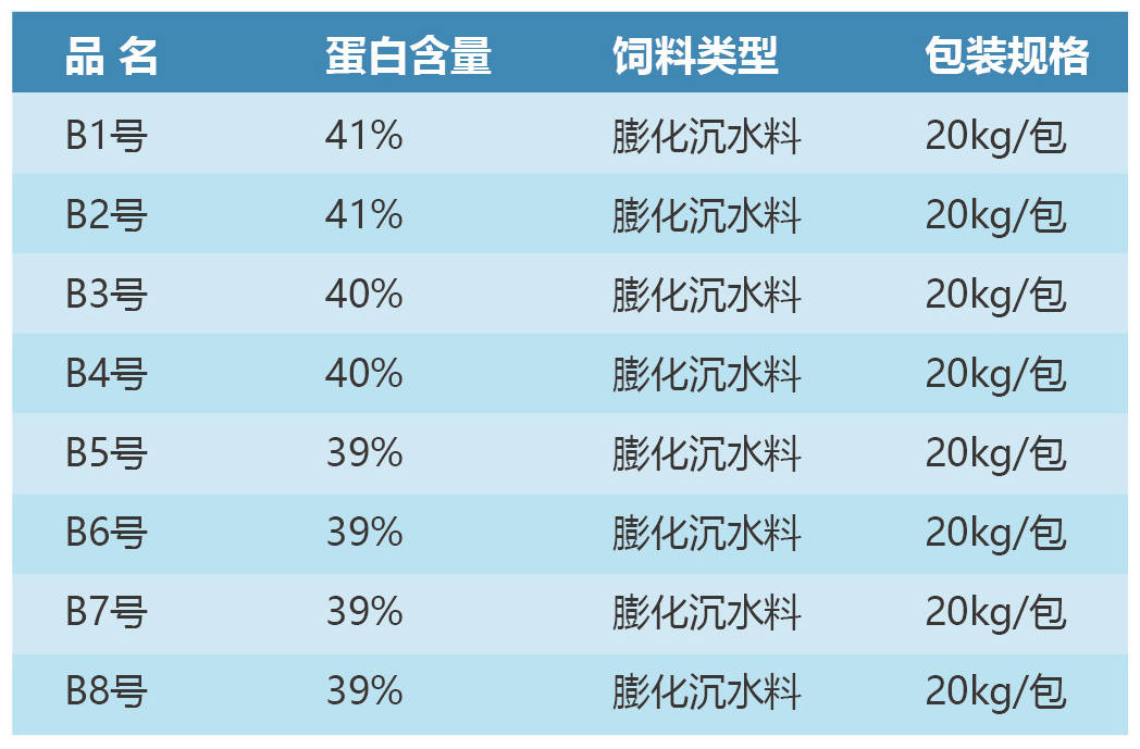 優(yōu)質(zhì)魚(yú)粉、面粉、酵母粉、肝末粉、豆粕、精煉魚(yú)油、多種氨基酸、穩(wěn)定型維生素、有機(jī)螯合礦物質(zhì)等。