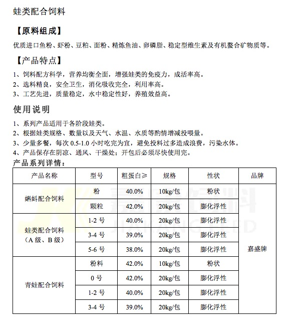 蛙類配合飼料